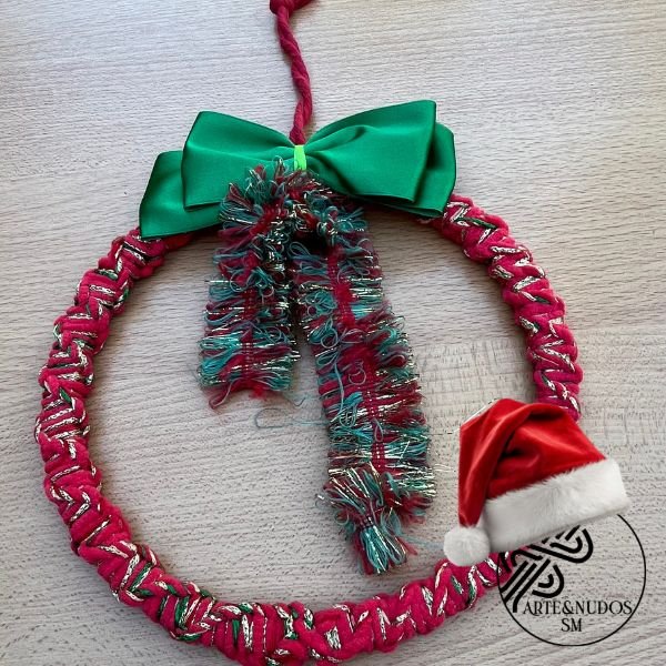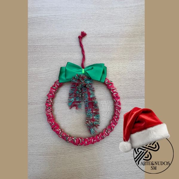 Esta delicada corona navideña está confeccionada a mano utilizando un cordón rojo con detalles brillantes que aportan un toque festivo y elegante. Su diseño liviano y minimalista la convierte en una opción perfecta para quienes desean sumar un detalle navideño sin sobrecargar la decoración.