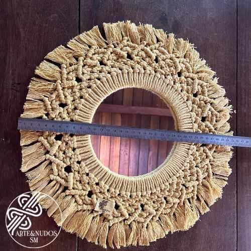 No pierdas la oportunidad de agregar este espejo redondo con marco hecho en macramé a tu hogar. Es mucho más que un simple objeto decorativo; es una declaración de estilo que refleja tu personalidad y apreciación por lo artesanal. Haz de tu espacio un lugar donde cada detalle cuenta.