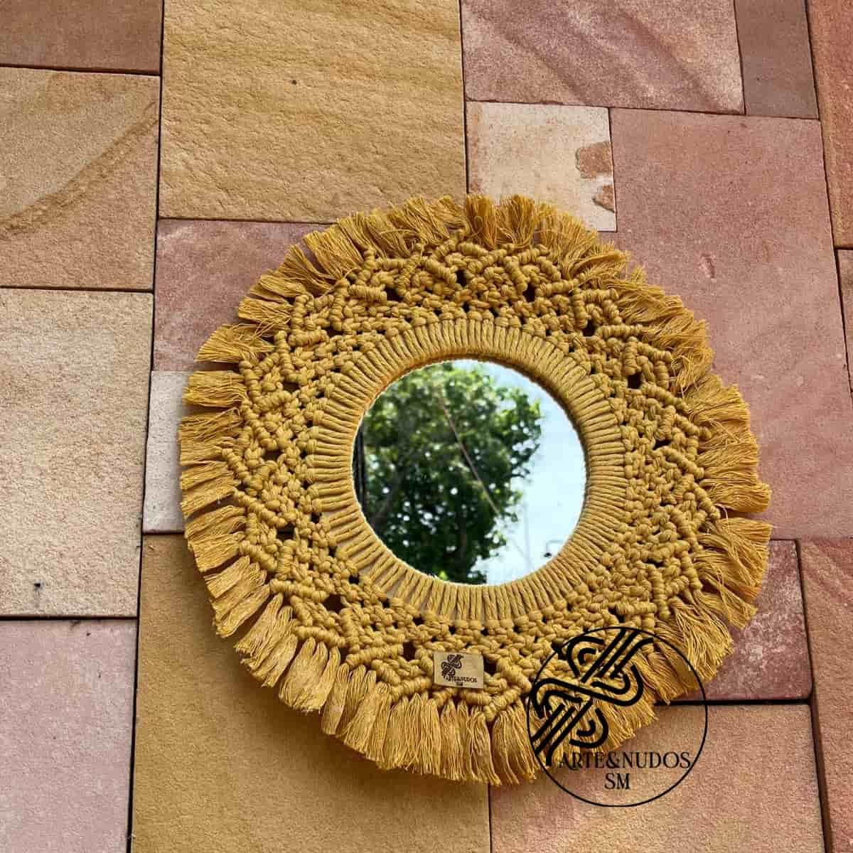 Transforma tu espacio con nuestro espejo redondo con marco hecho en macramé, una pieza única que combina la elegancia del diseño moderno con el atractivo del trabajo manual. Este espejo no solo refleja tu imagen, sino que también aporta un encanto especial a cualquier habitación. Su atractivo diseño de macramé realza la estética de tu entorno, convirtiéndolo en un elemento decorativo imprescindible.
